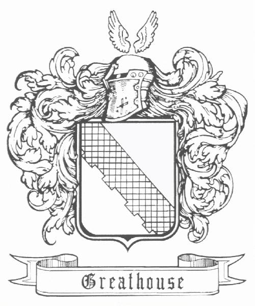 Married secondly to Catharine von Kruedener, documented to 1602, daughter of Livld. Chief of the Nobles Friedrich von Kruedener of Essen, Rosenbeck, and Hohenheyde, Livld., and of Elisabeth (Ebbo) von Rosen a. d. H. Mojahn, Livld. [End of page] Additional Notes: On the page above, there is an early version of the Coat of Arms that was awarded to a Grotthuss individual. The Coat of Arms in that document is very similar to a Coat of Arms that was published in an early 1990 book on the Greathouse family in America. The Coat of Arms in that book was stated to be one of the oldest Coat of Arms on record, which had been awarded to a Grothaus individual in Germany. The Coat of Arms below is an extract from the book titled, "Greathouse Family in America".